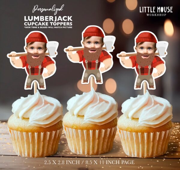 Custom Face Lumberjack Cupcake Toppers with Beard & Axe