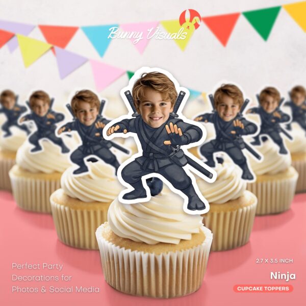 Custom Face Ninja Warrior Cupcake Toppers for Martial Arts Birthday Parties