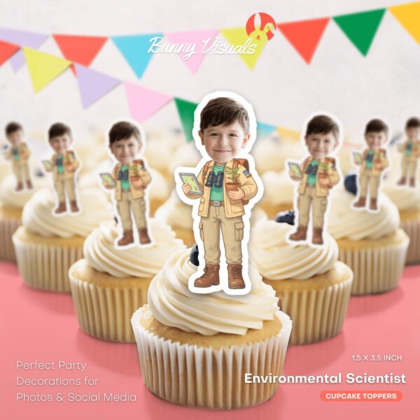 Custom Face Environmental Scientist Cupcake Toppers – Junior Nature Explorer Birthday Decor