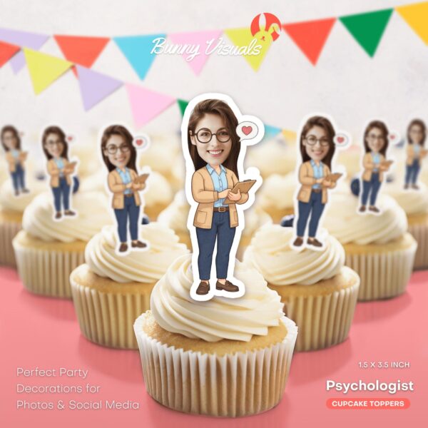 Custom Face Psychologist Cupcake Toppers: Personalized Therapist & Counselor Party Decorations