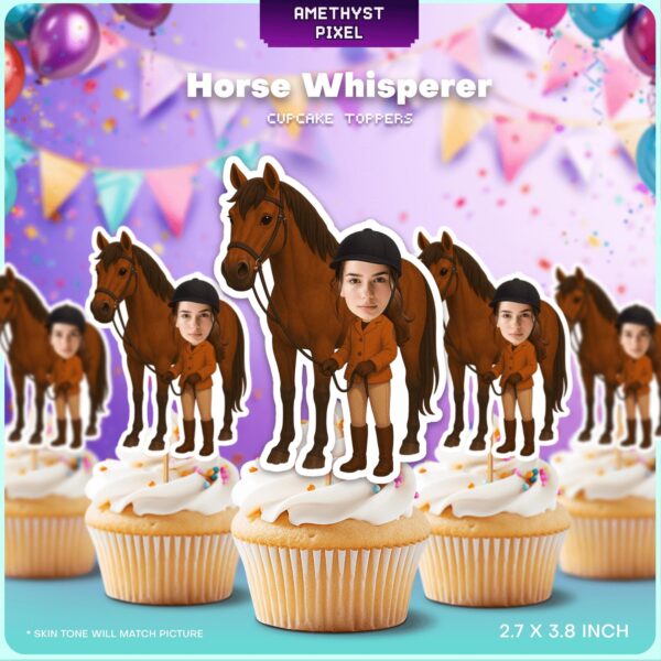 Custom Face Equestrian Show Jumper Cupcake Toppers for Horse Riding Parties