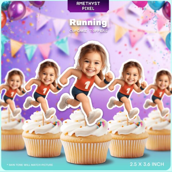 Custom Face Running Girl Theme Cupcake Toppers for Kids Track & Field Parties