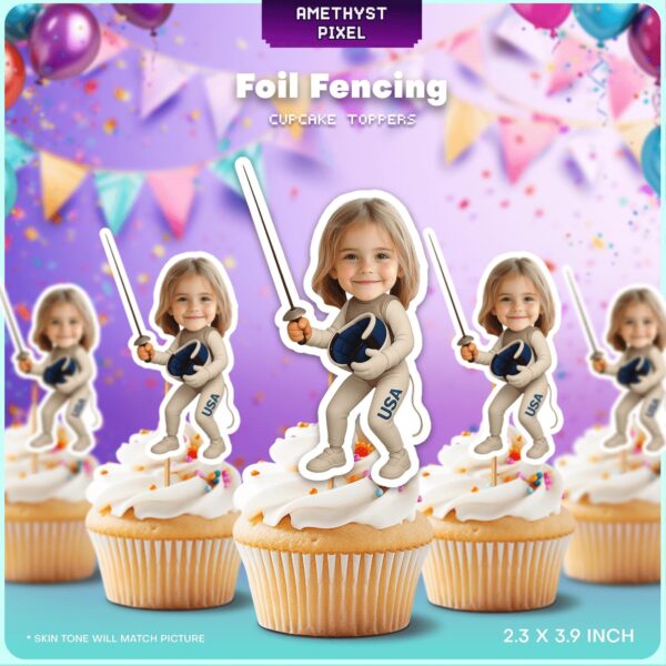 Custom Photo Foil Fencing Cupcake Toppers - USA Team Uniform Edition