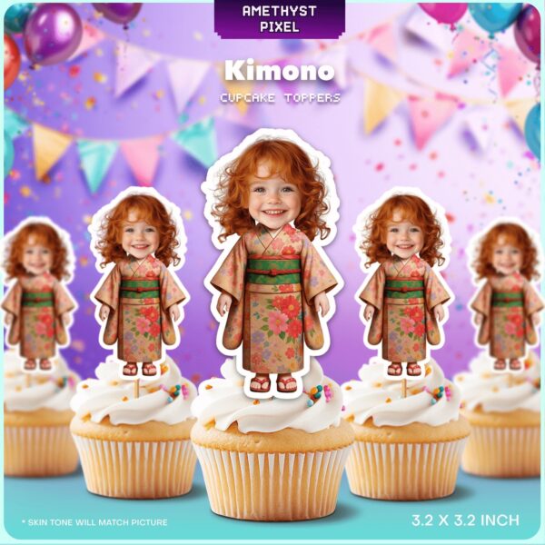 Personalized Japanese Kimono Cupcake Toppers With Custom Photo Integration