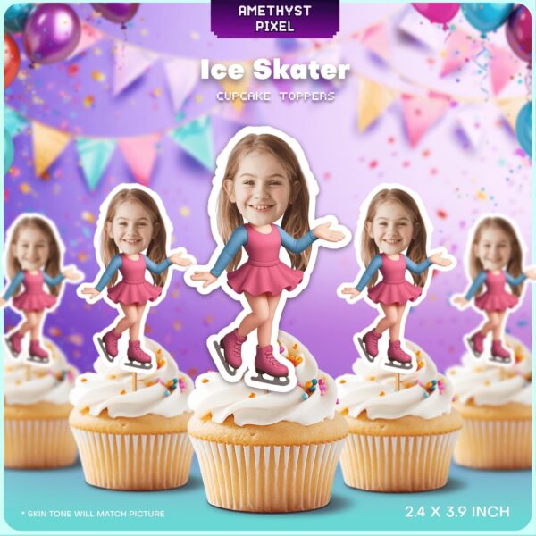 Personalized Ice Skater Cupcake Toppers - Custom Face Figure Skating Party Decor