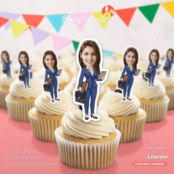Custom Face Female Lawyer Cupcake Toppers – Personalized Legal Professional Party Decorations