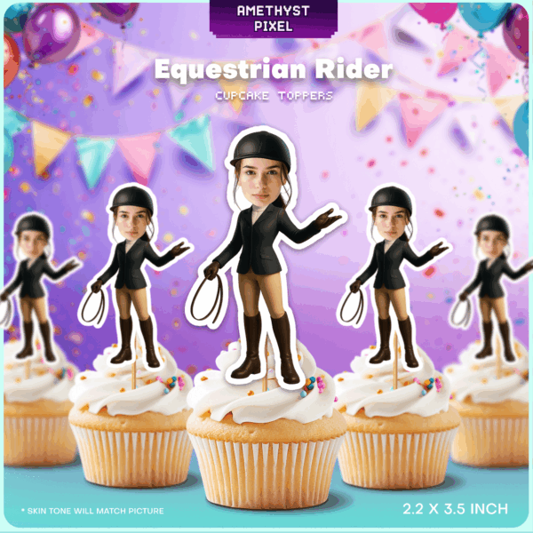 Custom Face Equestrian Rider Cupcake Toppers – Printable English Riding Party Decor