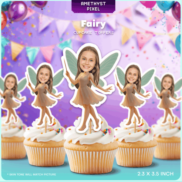 Custom Fairy Face Cupcake Toppers – Printable Enchanted Garden Birthday Décor