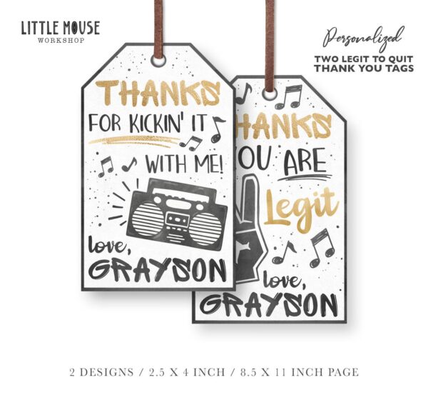 Two Legit To Quit Favor Tags | Personalized Hip Hop 2nd Birthday Labels