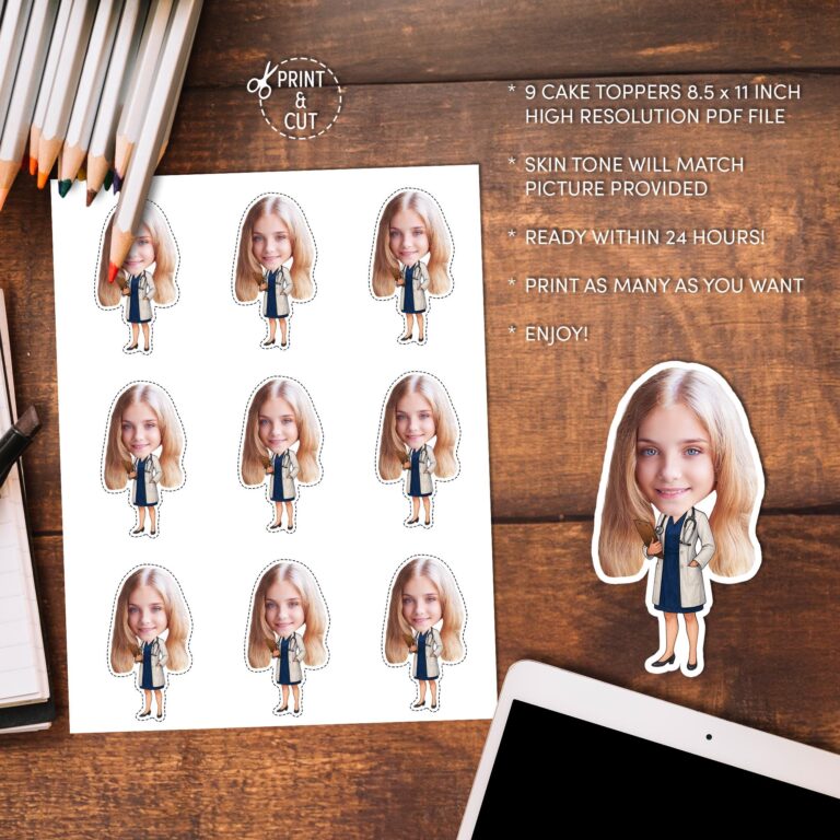 Custom Doctor Face Cupcake Toppers – Printable Medical School Graduation & Kids Party Decor