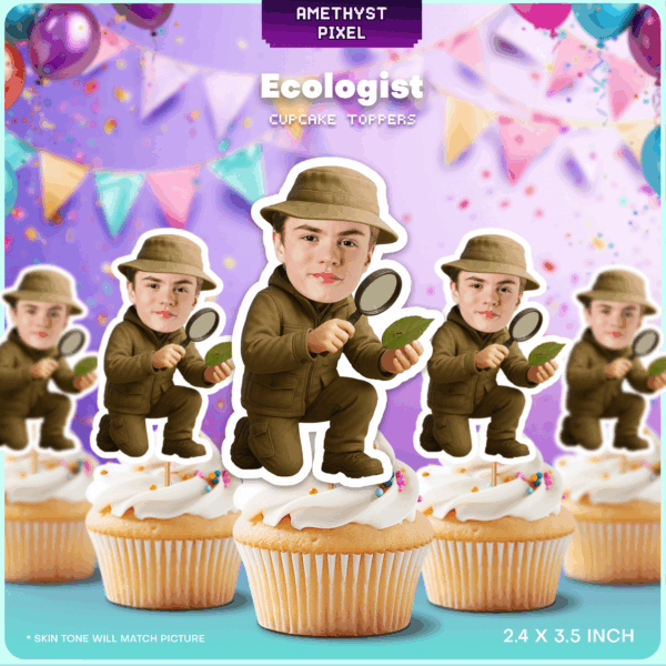 Personalized Ecologist Face Cupcake Toppers for Nature Explorer Birthday Parties