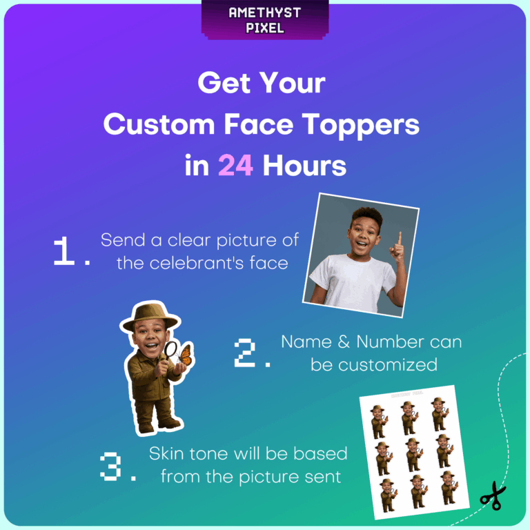 Transform your little nature enthusiast into a head-to-toe bug expert with these custom entomologist cupcake toppers. Designed for aspiring scientists and backyard explorers, this printable party decoration features your child's photo seamlessly edited onto a detailed khaki explorer outfit. The design includes a classic safari hat, cargo gear, and charming accessories like a handheld magnifying glass and a vibrant monarch butterfly. Ideal for children aged 3 to 10 celebrating a bug-themed birthday or science event, these toppers add a unique, personalized focal point to your dessert table. Upon purchase, you receive a high-resolution digital file optimized for home printing, ensuring sharp details and vibrant colors for your DIY assembly.