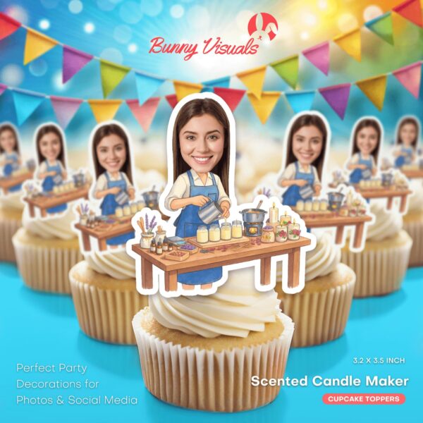 Custom Face Candle Maker Theme Cupcake Toppers for Artisan Craft Parties