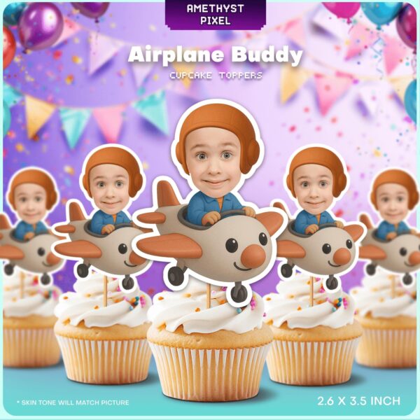 Custom Fighter Pilot Face Cupcake Toppers – Printable Aviation Birthday Decor