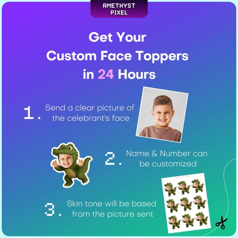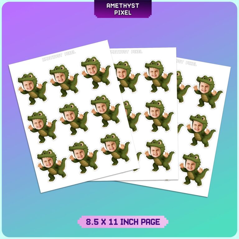 Transform your dessert table into a playful swamp adventure with these professionally designed Custom Face Alligator Cupcake Toppers. Tailored specifically for toddlers and young children, these 3.4 x 3.5-inch printable decorations feature a vibrant green cartoon crocodile body that highlights your child’s smiling photo inside the character's open jaw. The alligator is depicted in a fun, energetic stance with claws raised, making it an ideal choice for "Wild One" birthdays, zoo themes, or reptile lovers. By integrating your own photo into this high-resolution design, you create a memorable centerpiece that adds a trustworthy, expert finish to store-bought or homemade treats. This cohesive digital download ensures you receive high-quality graphics that are easy to print, cut, and assemble at home.