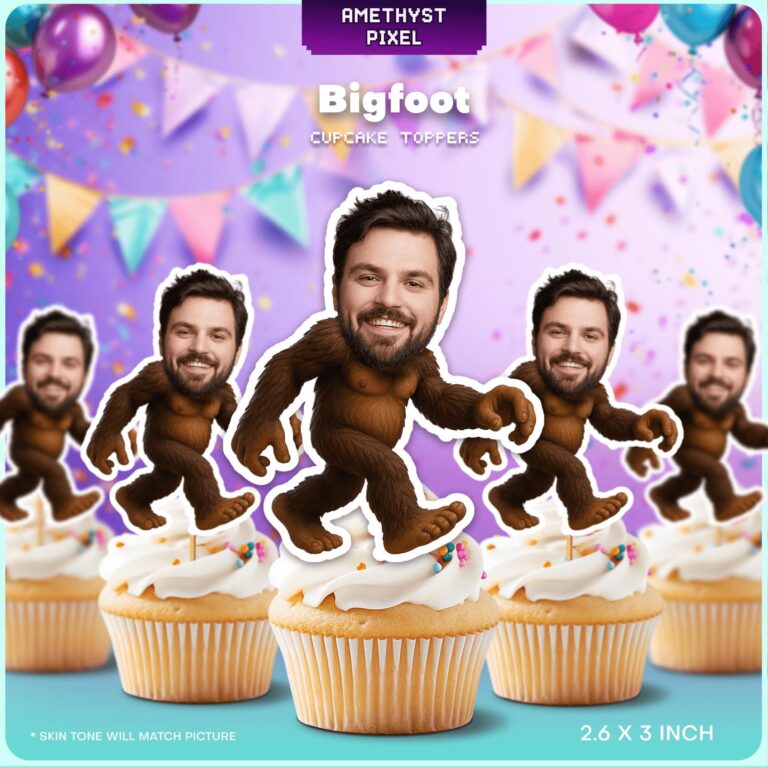 Custom Face Bigfoot Cupcake Toppers – Personalized Sasquatch Photo Decorations for Outdoor & Camping Themed Parties