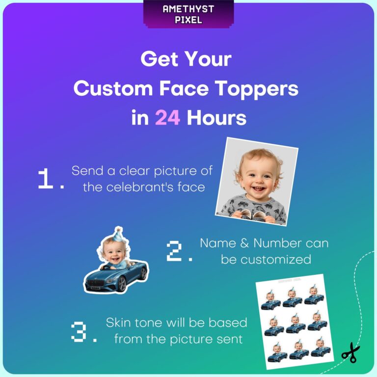 Elevate your child's luxury car-themed celebration with these high-end custom face cupcake toppers, placing your birthday boy directly in the driver's seat of a sleek blue convertible. Designed specifically for toddlers and young children with a passion for vehicles, this premium design features a prestigious automobile aesthetic paired with a festive blue striped party hat. Ideal for sophisticated first birthdays or "Two Fast" events, these printable decorations utilize high-resolution imagery to showcase your child’s photo with expert precision. The vivid blue tones and realistic car chassis details effortlessly transform ordinary dessert tables into a fleet of personalized, showroom-ready treats that build excitement and trust in the quality of your party decor.