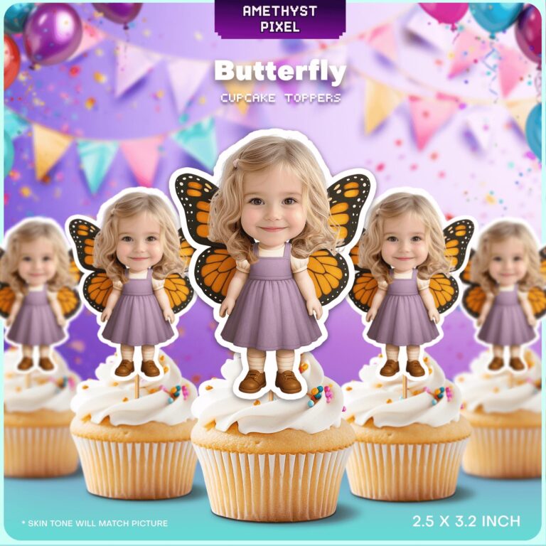 Monarch Butterfly Theme Custom Face Cupcake Toppers