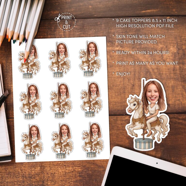 Custom Face Carousel Horse Cupcake Toppers - Printable Party Decor