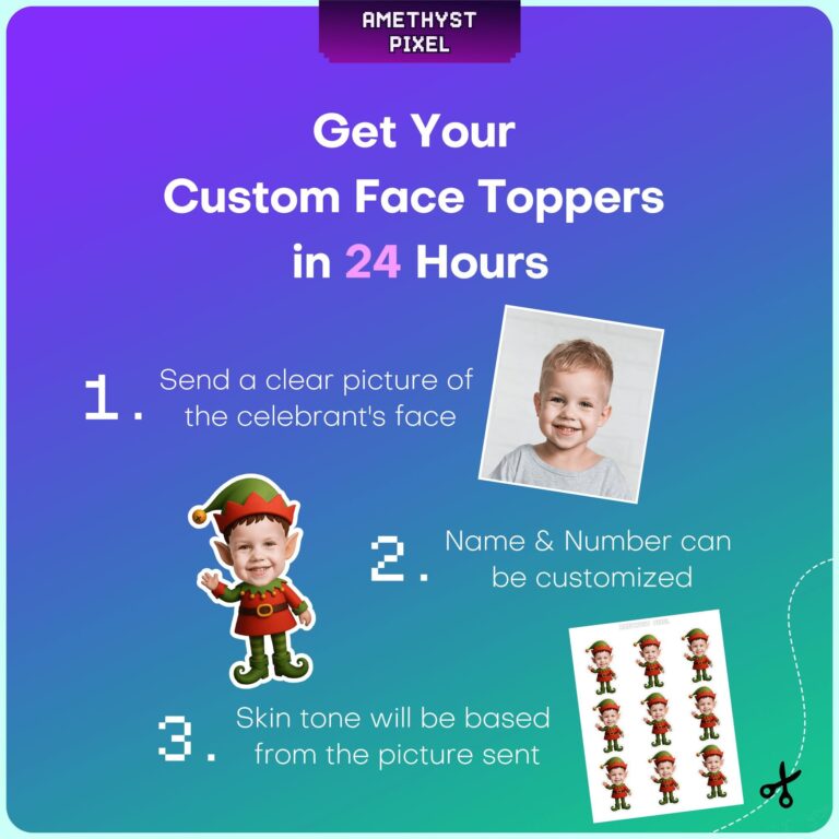 Personalized Christmas Elf Custom Face Cupcake Toppers for Holiday Celebrations