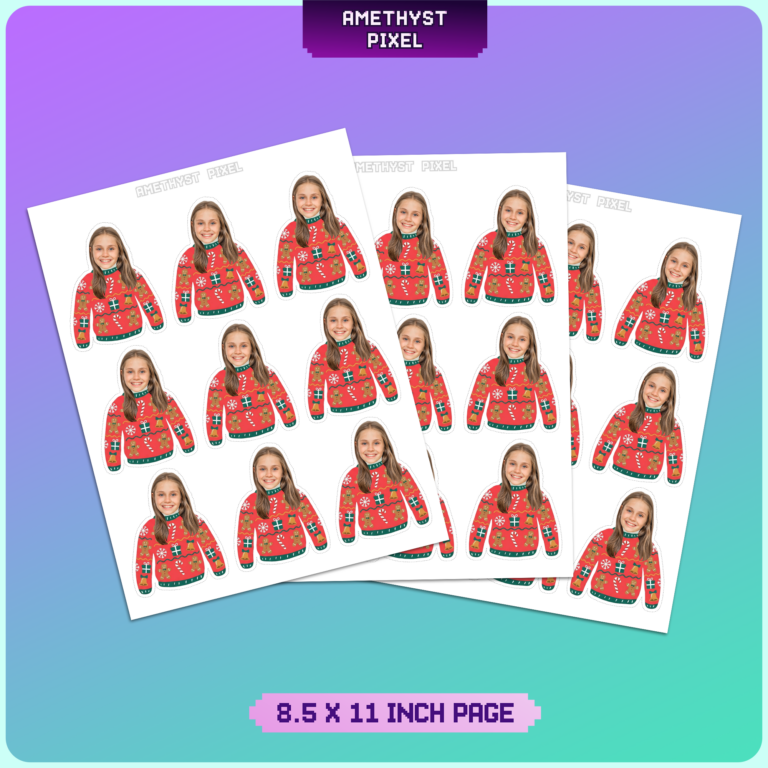 Bring personalized festive cheer to your dessert table with these printable Christmas sweater cupcake toppers. Perfect for family gatherings, office holiday events, or kids' winter parties, this digital download allows you to feature the guest of honor—or the whole family—wearing a classic red holiday sweater adorned with gingerbread men, candy canes, gifts, and bells. Simply use a high-quality photo to create a hilarious and heartwarming decoration that captures the spirit of the season. These photo-based toppers work best when printed on bright white cardstock to ensure the red and green colors pop. Whether you are planning an "Ugly Sweater" contest or just want to add a unique touch to your Christmas baking, these easy-to-assemble cutouts make your treats the centerpiece of the celebration.