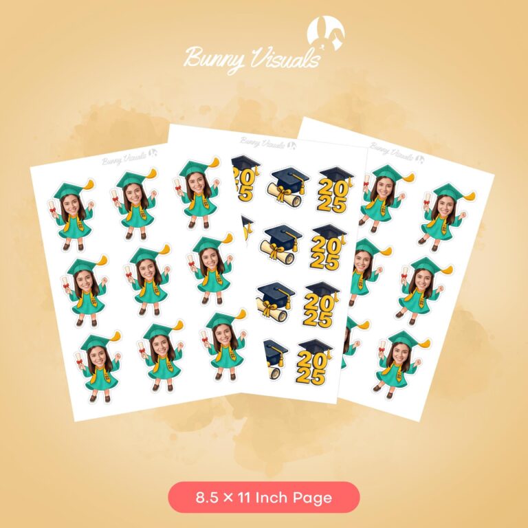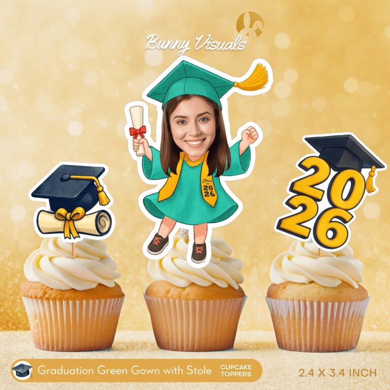 Custom Face Class of 2026 Graduation Cupcake Toppers with Green Gown