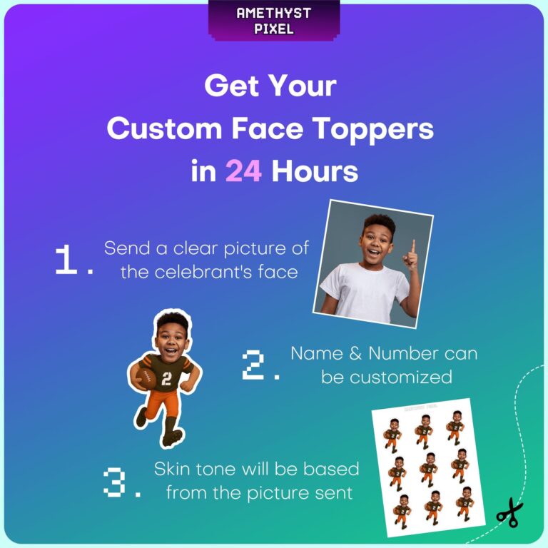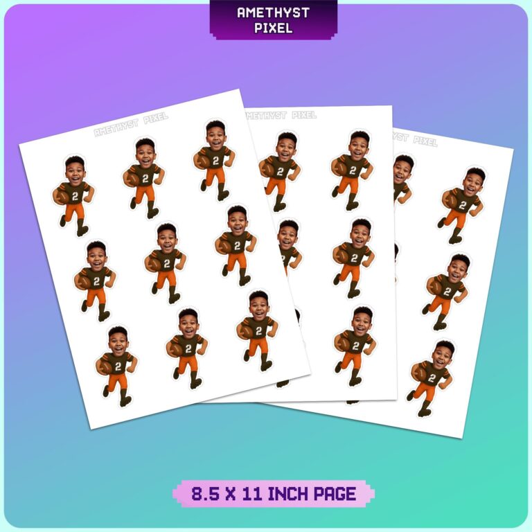 Elevate your next game day gathering or child’s birthday celebration with these dynamic Cleveland football themed cupcake toppers, designed to put your guest of honor right on the field. This expertly crafted digital design features a high-energy body template wearing the iconic brown and orange uniform, complete with a football tucked under the arm as the player sprints toward the end zone. Perfect for elementary-aged children and passionate sports fans, these 2 x 3.5-inch printable decorations maximize the impact of your dessert table with a professional, personalized touch. We seamlessly integrate your provided photo to create a fun, memorable custom face cutout that transforms ordinary store-bought frosting into a spirited tribute to the Dawg Pound.