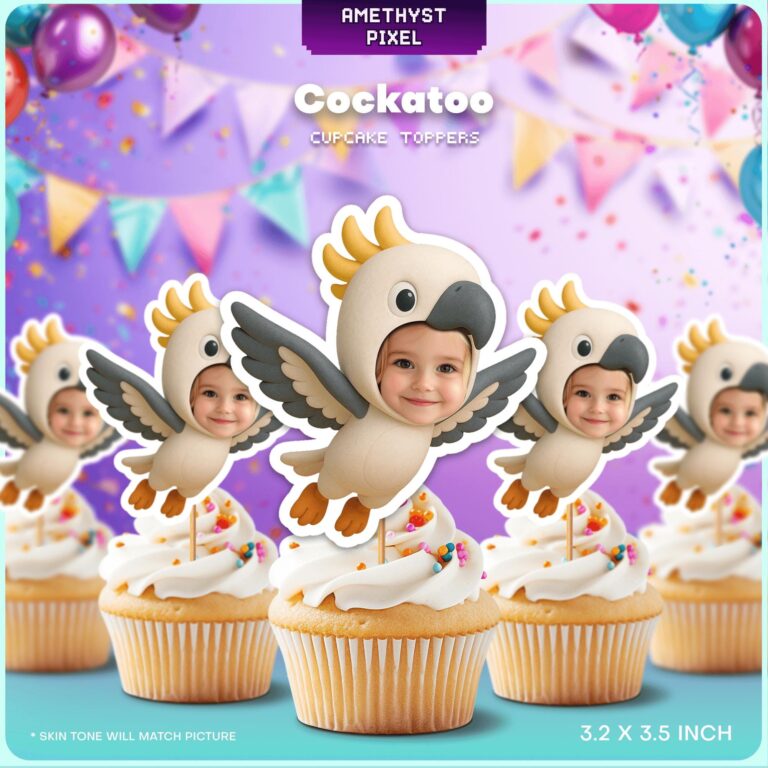 Custom Face Cockatoo Cupcake Toppers – Printable Bird Theme Party Decorations