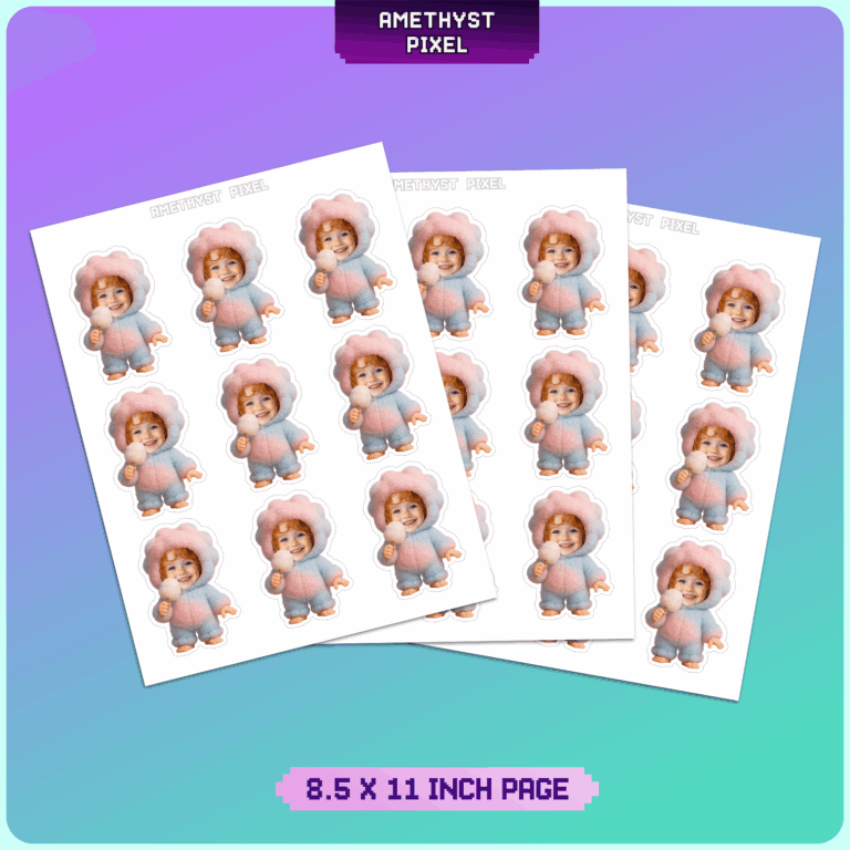 Add a sprinkle of sugary whimsy to your celebration with these custom cotton candy face cupcake toppers, perfect for transforming your child into the sweetest treat on the table. Ideally suited for babies and toddlers celebrating a "Sweet One" or carnival-themed birthday, this design features a fluffy, pastel pink and blue costume with a spun-sugar prop. As a digital printable, you receive a high-resolution file that allows you to print as many copies as you need from home. The design relies on a clear, front-facing photo to ensure the face cutout blends naturally with the adorable, textured-look outfit, making for a hilarious and memorable addition to your dessert display.