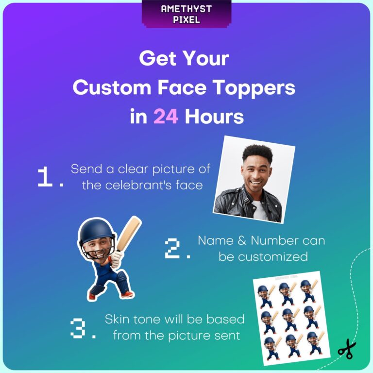 Custom Face Cricket Batsman Cupcake Toppers for Boys Sports Birthday Parties