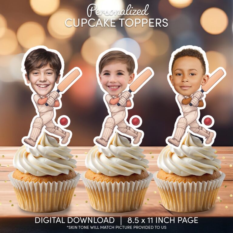 Custom Face Cricket Player Cupcake Toppers – Personalized Sports Party Decoration