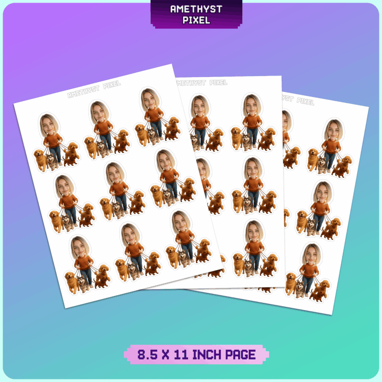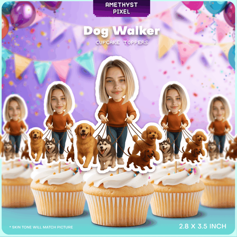 Custom Face Dog Walker Cupcake Toppers – Printable Pet Sitter Party Decorations