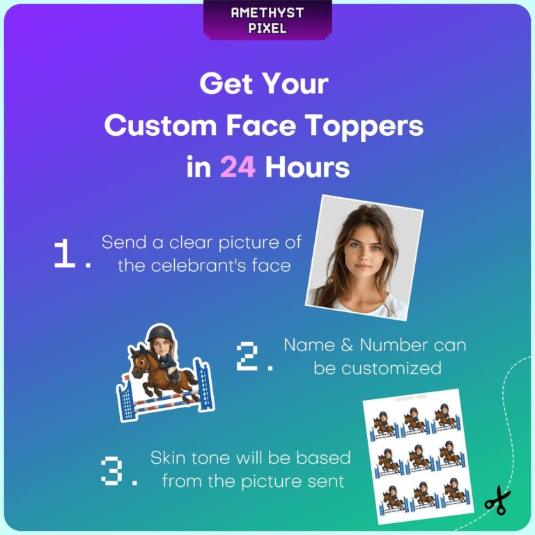 Custom Face Equestrian Show Jumper Cupcake Toppers for Horse Riding Parties