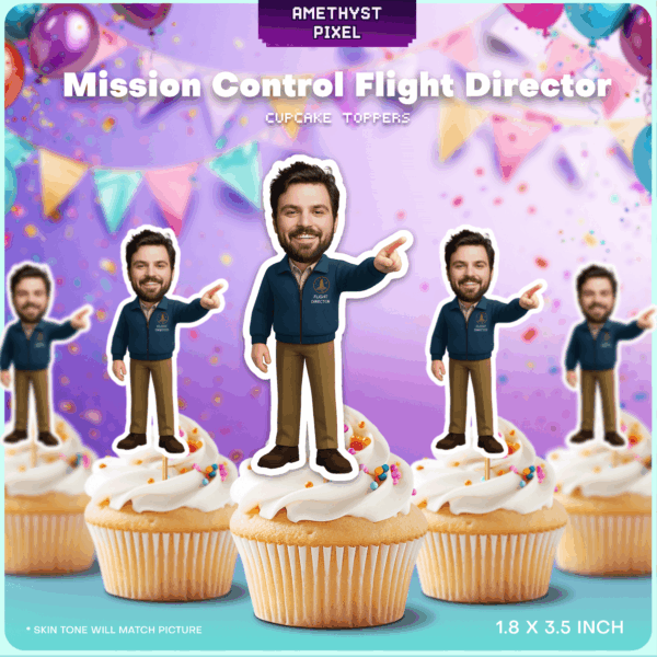 Custom Flight Director Face Cupcake Toppers - Printable Mission Control Party Decor