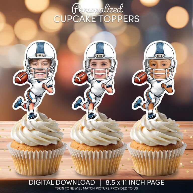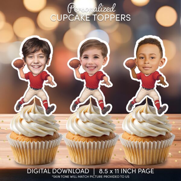Personalized Football Player Cupcake Toppers with Custom Face – Printable Sports Birthday Decor