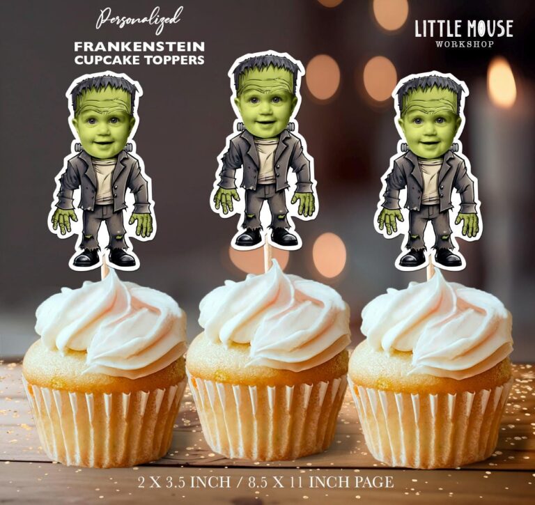 Personalized Frankenstein Custom Face Cupcake Toppers for Little Monster Birthday Parties
