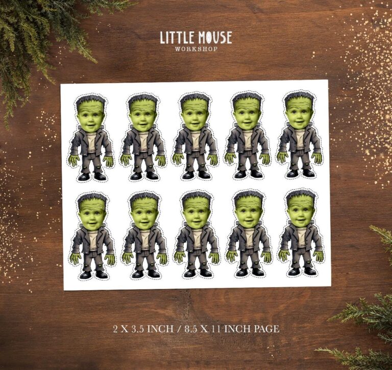 Transform your little one into the star of the spooky season with these professionally designed custom face Frankenstein cupcake toppers. Featuring a classic green-tinted complexion, iconic neck bolts, and a tattered grey suit, this digital design seamlessly integrates your child's photo into the legendary monster theme. Sized at approximately 2 x 3.5 inches, these printable decorations are perfectly scaled for standard cupcakes and print efficiently on 8.5 x 11-inch cardstock. They make an exceptional addition to 'Frankly I'm One' first birthday celebrations or family Halloween parties, offering a high-quality, DIY solution that combines humor with expert graphic design.