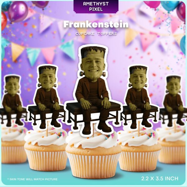 Personalized Frankenstein Custom Face Cupcake Toppers for Little Monster Birthday Parties