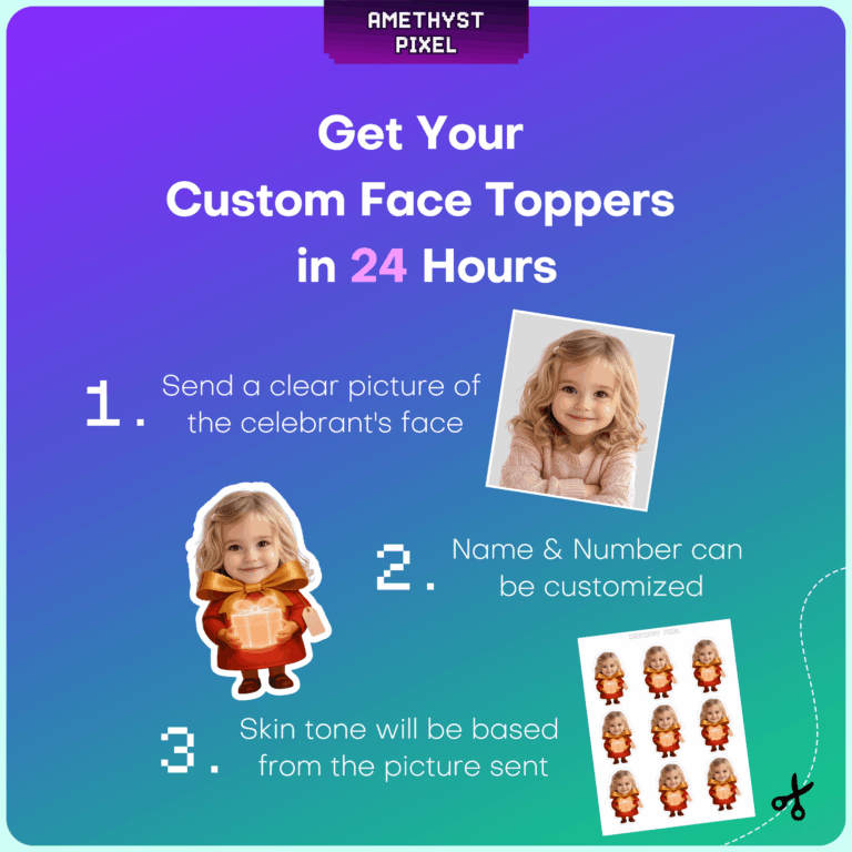 Make your little birthday star the center of attention with these adorable custom face cupcake toppers featuring a cheerful character holding a glowing wrapped present. This delightful design showcases a cartoon body in a red dress with a large golden bow, perfectly framing your child's photo to look like they are presenting a special gift. Ideal for toddlers and young children, these printable party decorations add a heartwarming and personalized touch to any dessert table. As a digital download, this product allows you to print unlimited copies at home, ensuring you have enough toppers for every guest. Simply provide a high-quality photo, and we will customize the topper to match the skin tone and fit the design seamlessly, creating a memorable keepsake for your celebration.