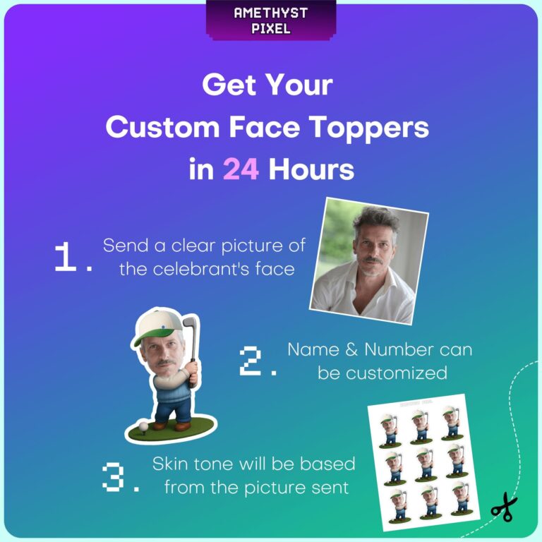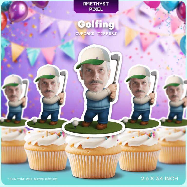 Custom Face Golfer Cupcake Toppers – Personalized Golf Retirement & Birthday Party Decorations