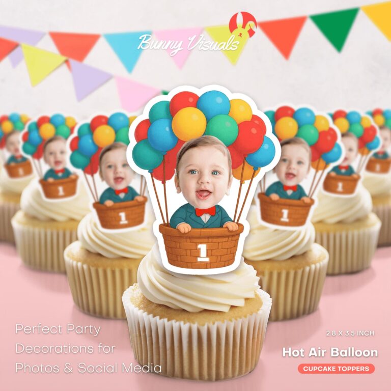 Custom Face Hot Air Balloon Adventure First Birthday Cupcake Toppers