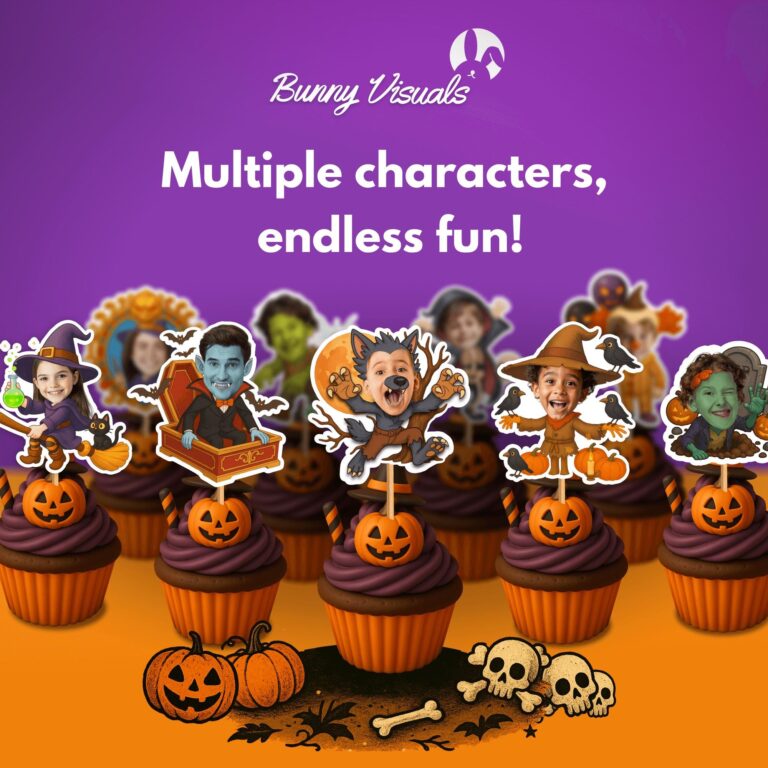Personalized Pumpkin Mage Custom Face Cupcake Toppers for Kids Halloween Events
