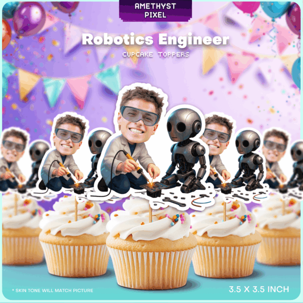 Custom Face Inventor Cupcake Toppers – Personalized Handyman & Engineer Party Decorations