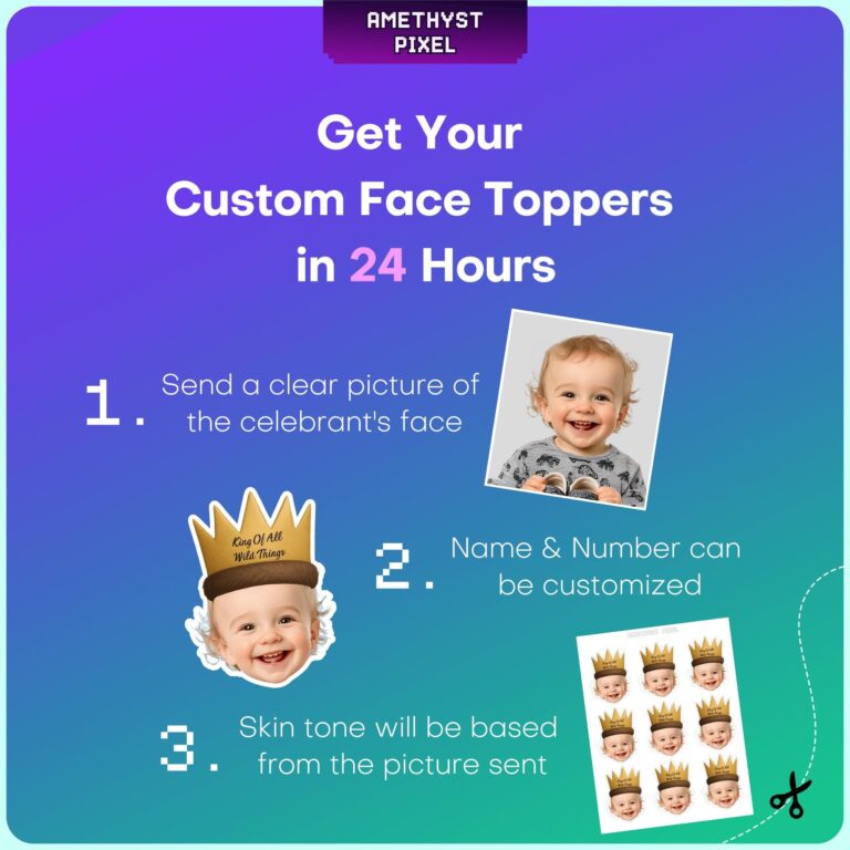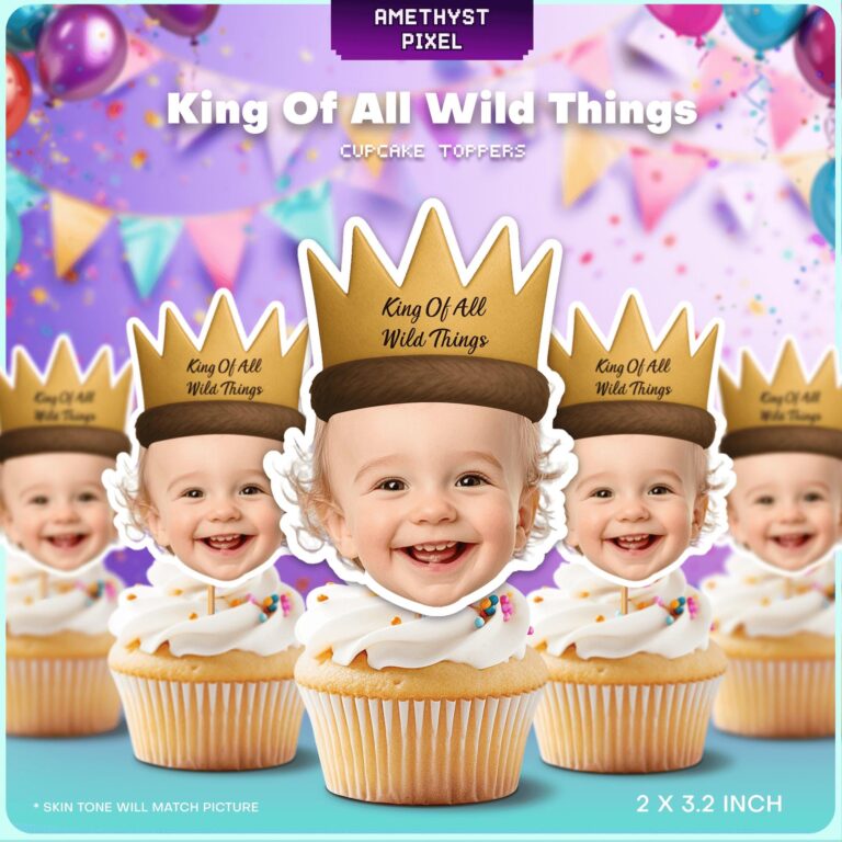 Custom Face King of All Wild Things Cupcake Toppers – Personalized Wild One Birthday Decor