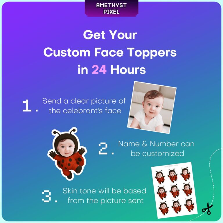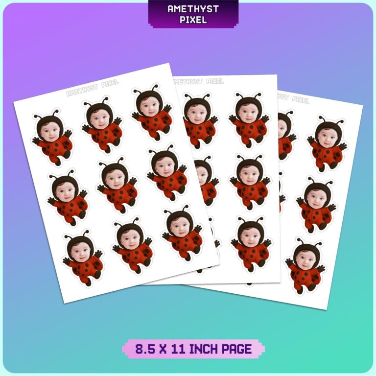 Transform your dessert table into an enchanting spring setting with these professionally designed custom face ladybug cupcake toppers, perfect for celebrating a first birthday or a garden-themed event. The illustration features a vibrant red suit with classic black polka dots and adorable antennae, designed to seamlessly integrate your baby or toddler's photograph into the character. Leveraging expert photo editing techniques, we ensure the skin tones and proportions look natural against the animated body, creating a polished and high-quality decoration. These personalized toppers serve as a charming focal point for 'Little Ladybug' parties, offering a unique way to highlight the guest of honor while adding a cohesive, professional touch to your homemade or bakery-bought treats.