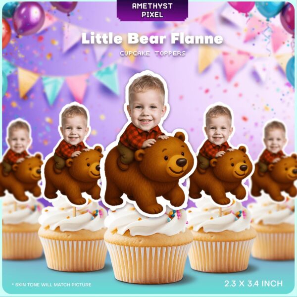 Custom Face Little Bear Cupcake Toppers for Teddy Bear Picnic Birthday