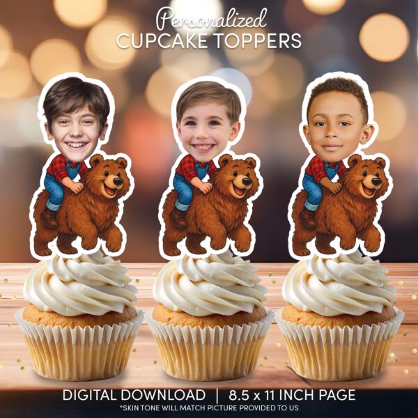 Custom Photo Lumberjack Bear Rider Cupcake Toppers