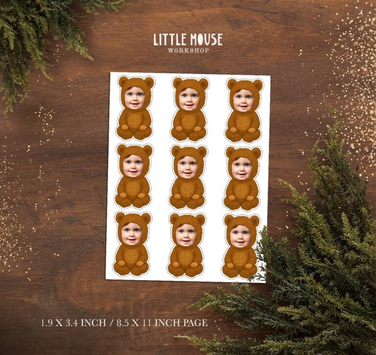 Capture the cozy warmth of a woodland celebration with these custom Little Bear cupcake toppers, expertly crafted to feature your baby’s face within a plush, brown teddy bear design. These personalized decorations are essential for elevating a "We Can Bearly Wait" baby shower or a classic Teddy Bear Picnic first birthday, offering a high-quality, textured look that mimics real fur. Unlike generic party supplies, these photo-based inserts provide a unique focal point for your dessert table, showcasing the guest of honor in an adorable bear cub costume. Designed for precise cutting and easy assembly, they allow parents to create professional-looking, customized treats that resonate with the innocence and joy of early childhood milestones.