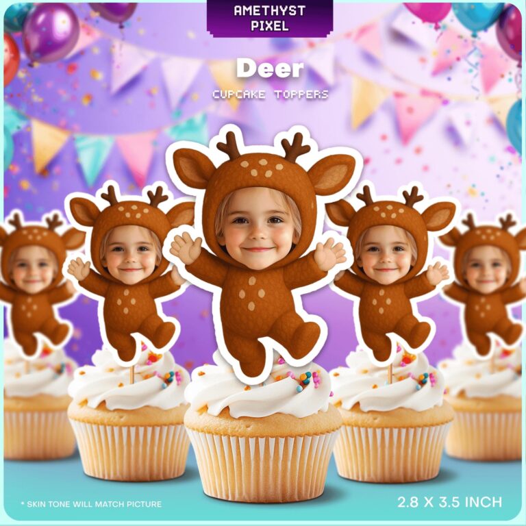 Custom Face Little Deer Cupcake Toppers | Personalized Woodland Party Decor