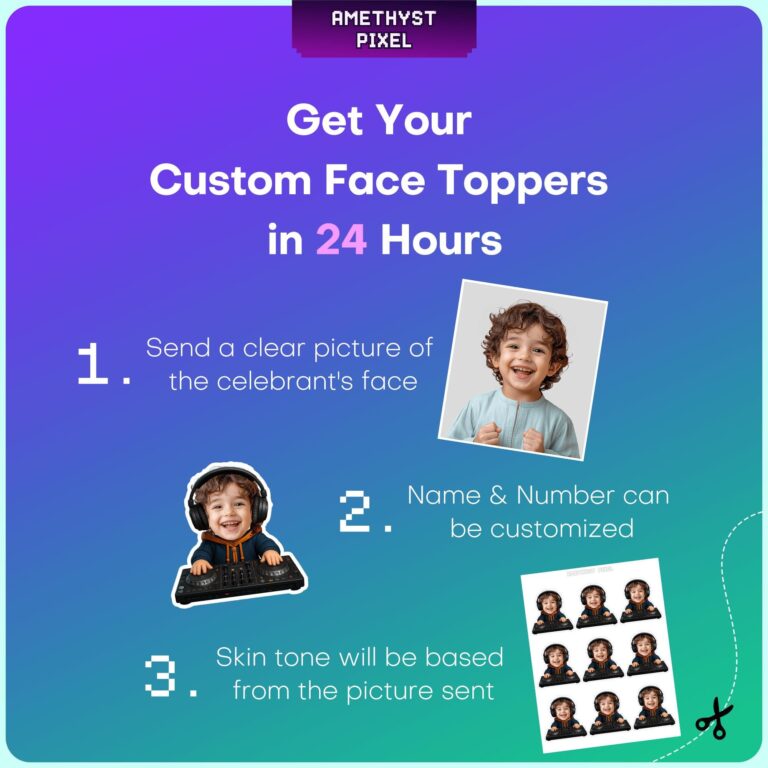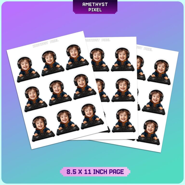 Turn up the volume on your child’s next celebration with these high-energy, custom face DJ cupcake toppers. Specifically designed for music-loving toddlers and young children, each topper showcases a vibrant illustration of a mini-DJ mixing beats on a professional turntable console while sporting oversized headphones. This personalized decoration adds a unique, humorous touch to dessert tables by featuring your little one as the star performer. Ideal for dance parties, hip-hop themes, or general music birthday bashes, these 2.7-inch toppers are sized perfectly for standard cupcakes. The high-quality design ensures your party photos look professional while effectively highlighting the guest of honor in a fun, creative way.